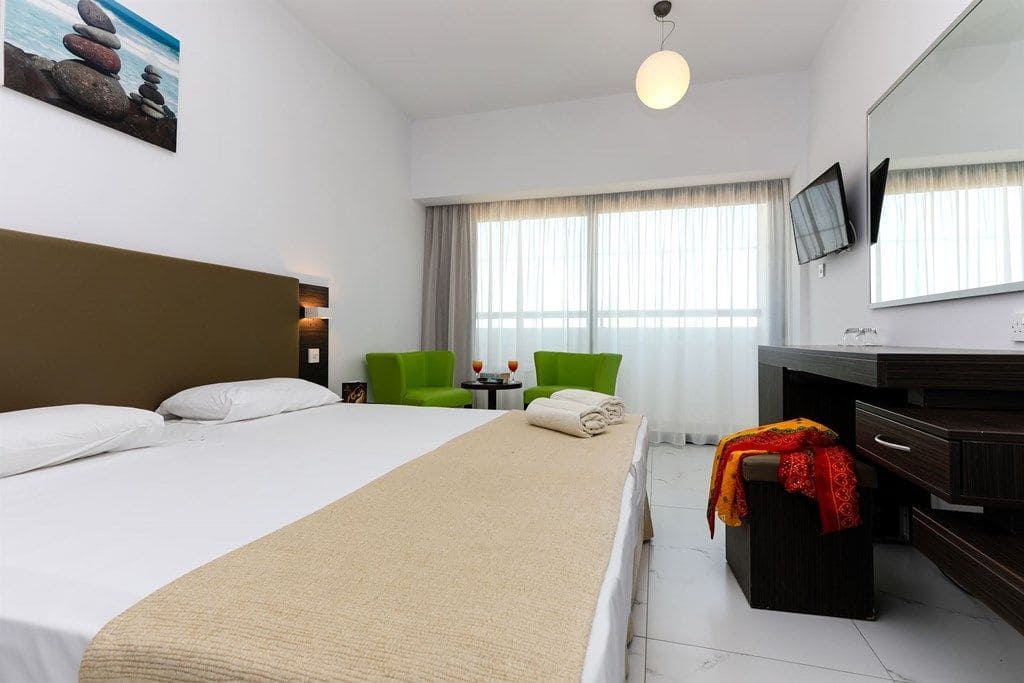 - Superior (макс. 2+2 чел, 31 м2) – просторный однокомнатный номер с ванной комнатой и балконом с частичным или прямым видом на море.
