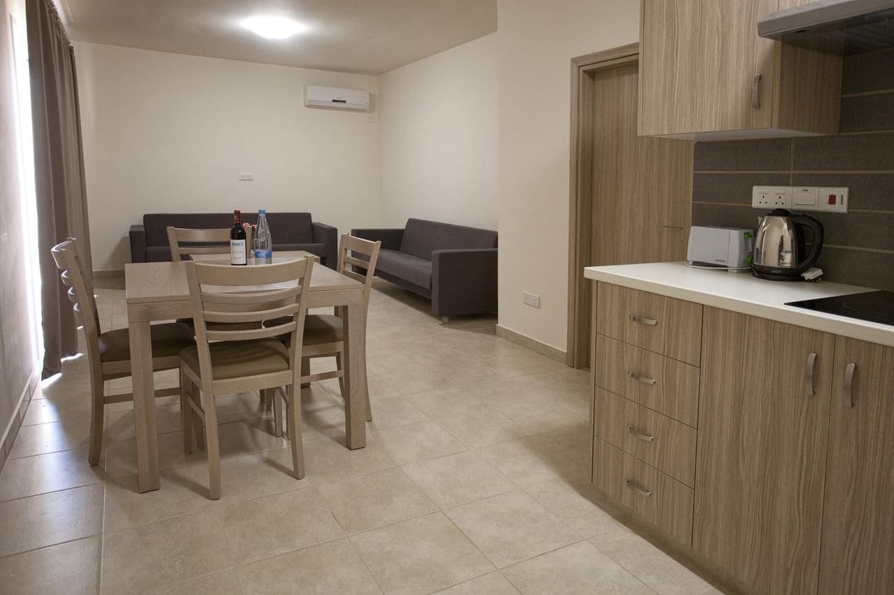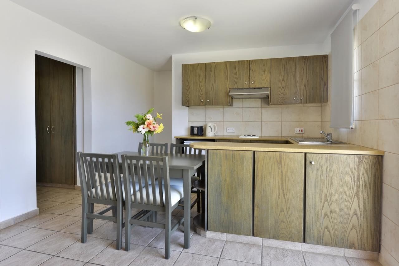 - Superior one bedroom apartment (41 кв.м., макс. 4 чел.) - номера расположены на первом этаже, спальня, гостиная, межкомнатная дверь, мини-кухня, балкон с видом на сад