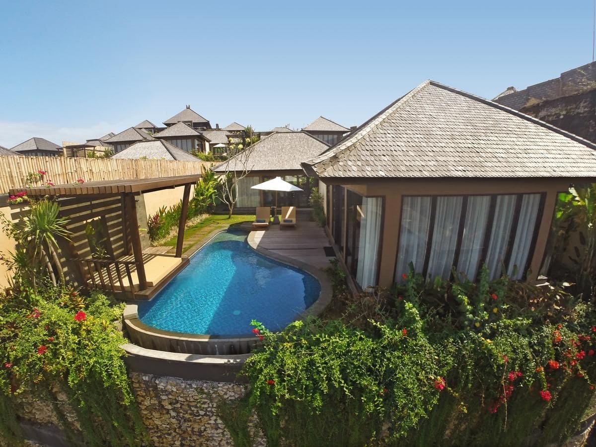 1 2BR Pool Villa (вид на океан, 2 спальни с кроватью размера king size и отдельными ванными комнатами, полностью оборудованная кухня со всеми удобствами, такими как газовая плита, 2-дверный холодильник, микроволновая печь, кофеварка / чайник, тостер, горячая и холодная минеральная вода в бутылках и полное кухонное оборудование, частный бассейн с шезлонгом, беседка, макс. 2+2 чел., 500 м2);