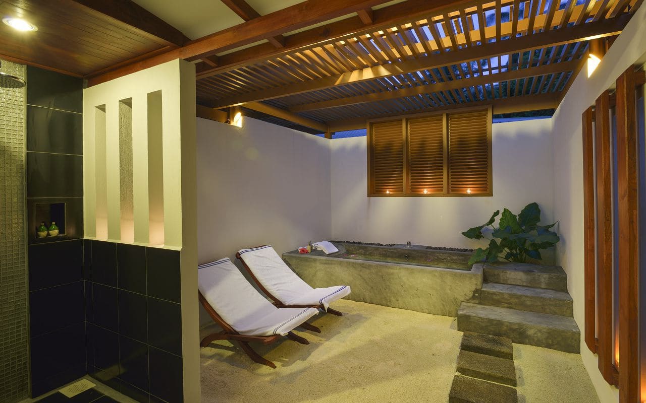 128 Deluxe Beach Villa (52м2, макс. 3 или 2+1 чел.). Аналогичны Beach Villa, но дополнительно имеют ванну в ванной комнате, а также душ на открытом воздухе.
