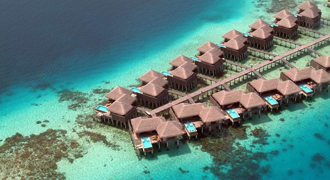 Aqua, расположен на сваях над водой.