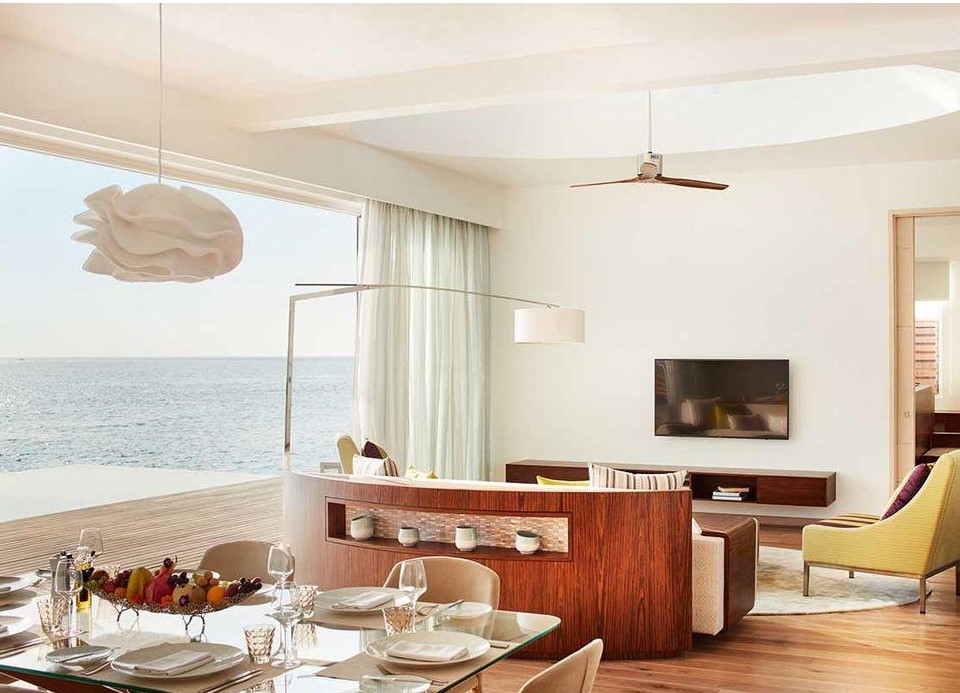 Jumeirah Maldives – новый респектабельный курорт с оригинальным дизайном.Вместо бунгало с соломенными крышами гостей ждут двухэтажные пентхаусы, демонстрирующие передовой дизайн для Индийского океана. Резиденции располагают персональными бассейнами и террасами на крыше. Чтобы оказаться на сказочном пляже, достаточно выйти за порог комфортабельного люкса.В отеле предусмотрен spa-центр Me Welness, водные виды спорта и дайвинг-клуб PADI. Для семей с детьми работает мини-клуб. Для влюбленных пар отель организует свадебные церемонии, романтические фотосессии, ужины при свечах.