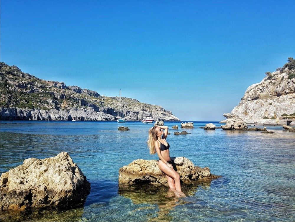 Продолжили мы свое знакомство с островом уже на пляжах. На Родосе много различных бухт с кристально чистой водой. Одна из таких бухт - бухта Энтони Куинн, расположенная в 4 км от курортного города Фалираки. Виды там просто волшебные.