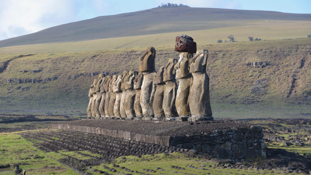 Аху-Тонгарики (Ahu Tongariki) — самая большая платформа с 15 моаи.