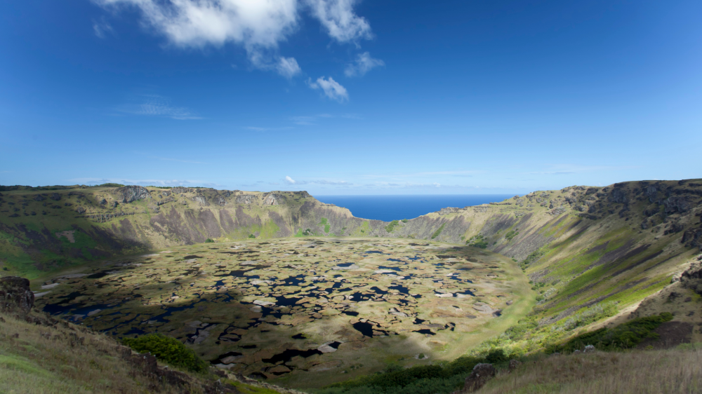 Вулкан Рано-Као (Rano Kao). Кратер 1.6 км в диаметре и 200 м глубиной — живописнейший ландшафт.