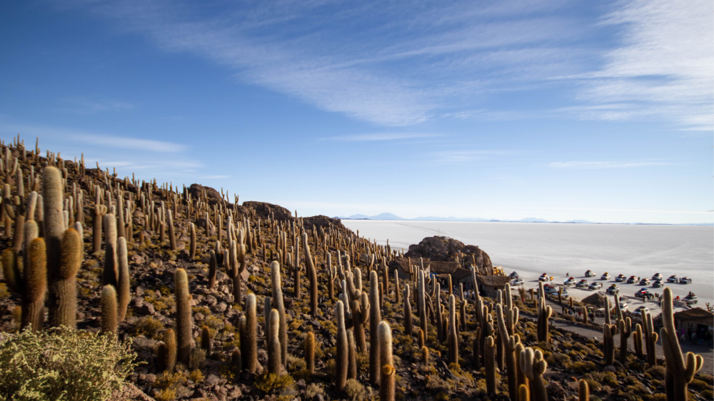 Остров Инкауаси (Inca Huasi) в сердце солончака. Гигантские 12-метровые кактусы — изолированная экосистема.